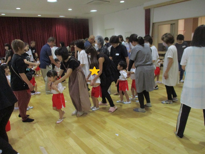本日、大好きなおじいちゃん、おばあちゃんと一緒に遊び、ふれあいを深める祖父母参観『わくわくふれあいデー』が行われました。110名程の祖父母の方にご参加頂き、ゲームあそびや製作、フォークダンス、折り紙などを一緒に楽しんで頂きました。子どもたちも一緒に遊んでもらったり、作り方を教わりとても嬉しそうでした。最後に「ありがとうございました」と感謝の気持ちを伝えていました。