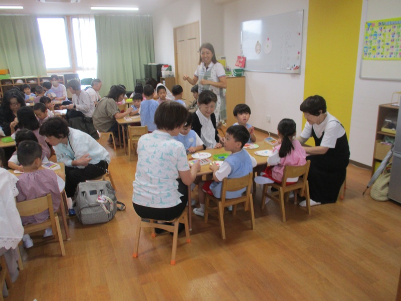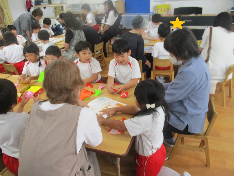 本日、大好きなおじいちゃん、おばあちゃんと一緒に遊び、ふれあいを深める祖父母参観『わくわくふれあいデー』が行われました。110名程の祖父母の方にご参加頂き、ゲームあそびや製作、フォークダンス、折り紙などを一緒に楽しんで頂きました。子どもたちも一緒に遊んでもらったり、作り方を教わりとても嬉しそうでした。最後に「ありがとうございました」と感謝の気持ちを伝えていました。