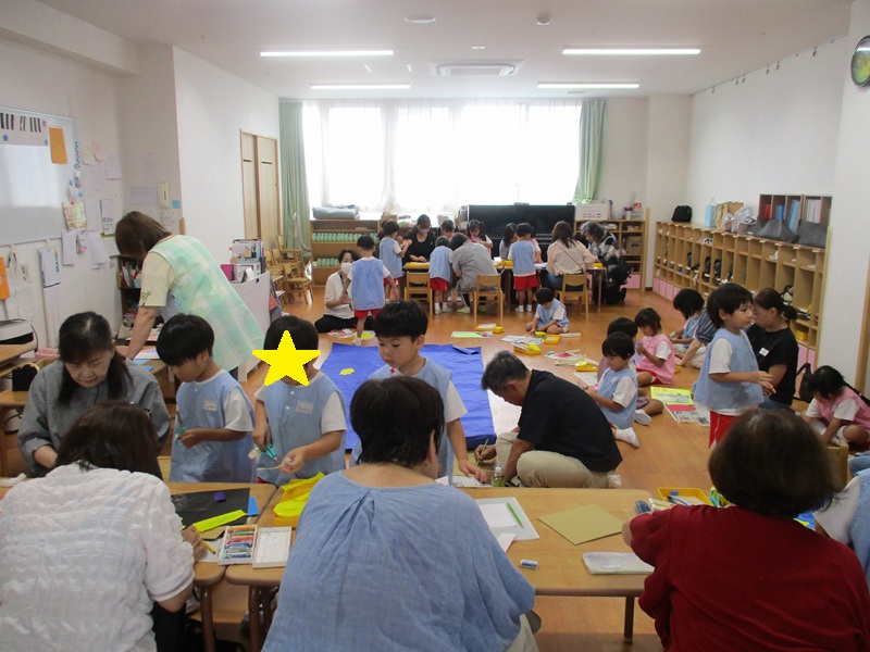 本日、幼児組の七夕まつりが行われました。年少から年長の縦割りのグループに分かれて、みんなで盆踊りを踊った後は、お楽しみのお遊び(ヨーヨー・人形すくい・玉入れ・わなげ・ボーリング)をしました。いっぱい遊んだ後は、おやつのジュースを飲んで休憩をしたり、プロジェクターで『たなばたさま』のお話も見ました。「たのしかった~」と大満足の子どもたちです。年長組のお兄ちゃんとお姉ちゃんは、年下の子のお世話も頑張っていましたよ。